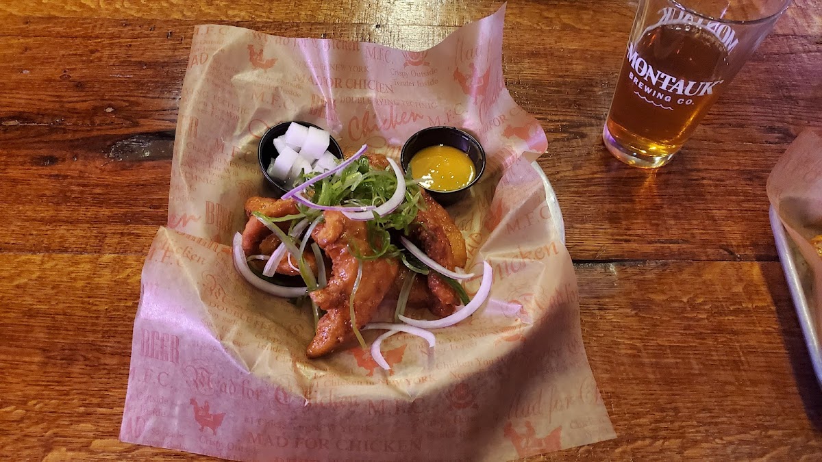 My cousin’s and I were looking for a nice place where we can vibe and have some great Korean chicken. We stumbled upon Mad Chicken in Rockville Center. Once we walked in we were seated immediately. The food was 10/10. Chicken tenders I ordered were crispy and the soy garlic sauce was tasty. The music and atmosphere were so great. Jacob our host/waiter was amazing. He had a great playlist and made sure we were good. Definitely will come back and recommend !!